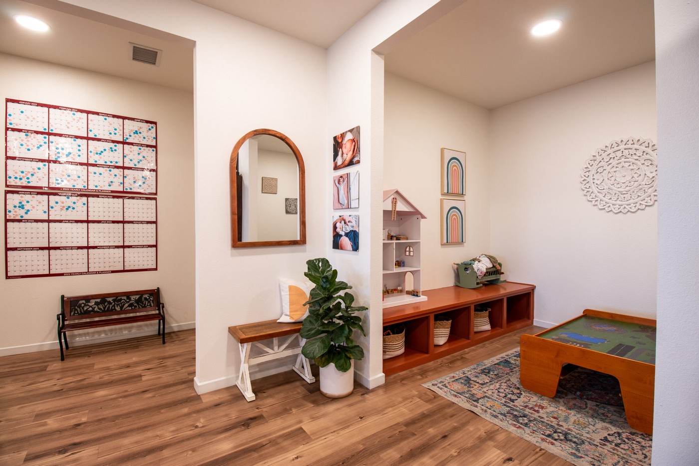 Our reception and prenatal rooms feel more like a cozy living room than a clinic. They're filled with soft light, warm touches, and space for your whole family—including a play area for little ones. We invite your partner, children, or loved ones to join you at appointments—because your birth is a family journey, and we love getting to know everyone supporting you.